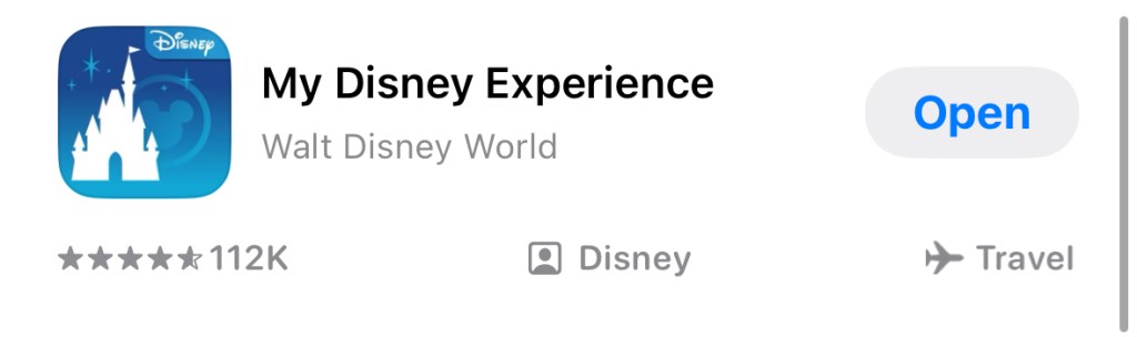 “Screenshots from the official My Disney Experience app (Disney). Shared here for informational purposes.”