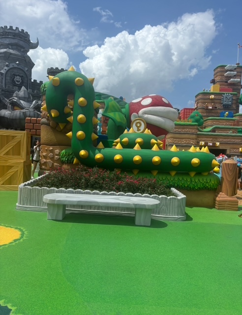 Without a doubt, the most popular and busiest land in Epic Universe all day was Super Nintendo World. This land transports you right into the Mushroom Kingdom, with immersive areas and bright colours welcoming you in. These attractions become popular quickly, so get in line as soon as you can if these rides are a priority for you. You have 3 attractions to choose from; Mario Kart: Bowser’s Challenge, Yoshi’s adventure and Donkey Kong Mine -Cart Madness, which means there’s something for all the family. These attractions will come at a wait, so prepare for that.